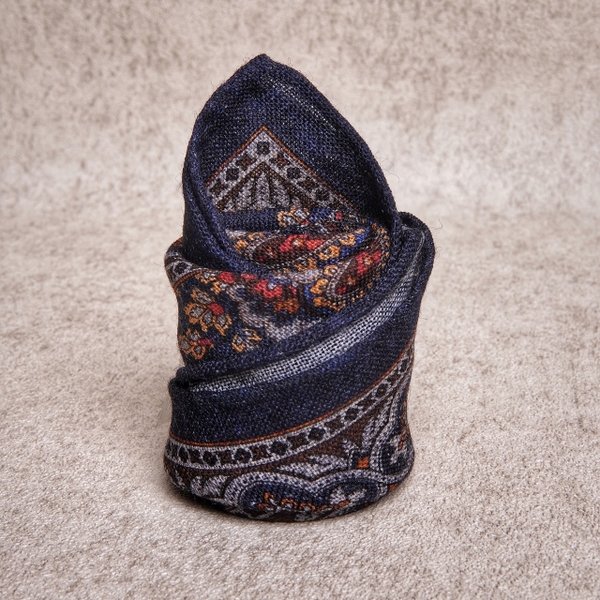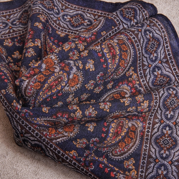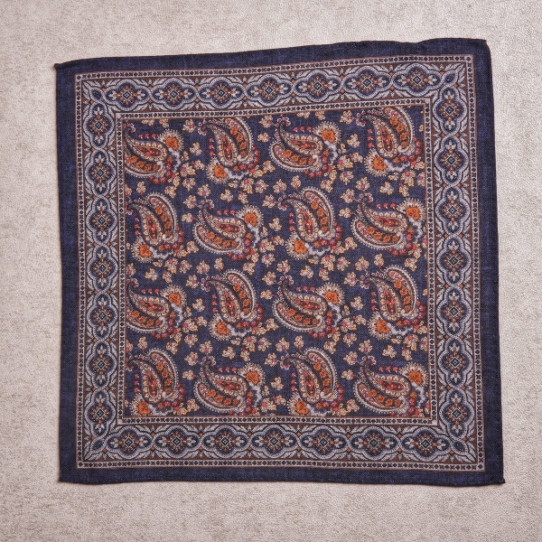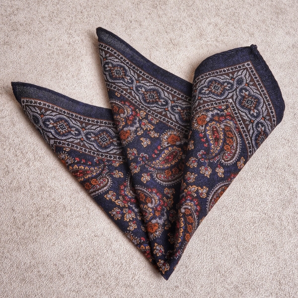 Artisan Navy Burgundy Paisley Wool Pocket Square