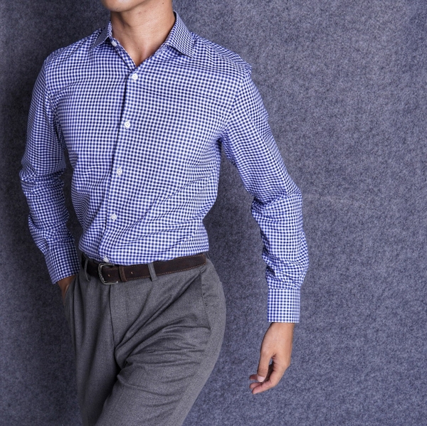 Dark Blue White Check Cotton Shirt