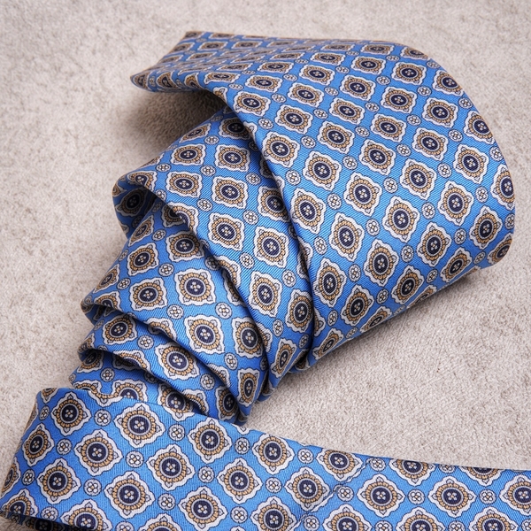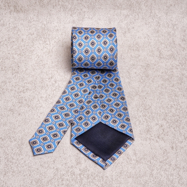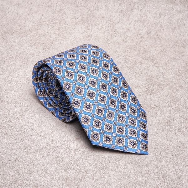 Medallion Yellow Cyan Silk Tie