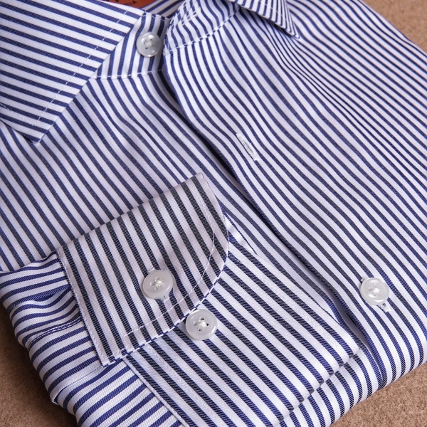 Navy White Striped Cotton Shirt