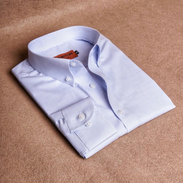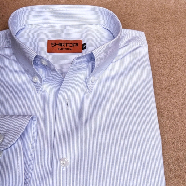 Pastel Blue Striped Button Down Cotton Shirt