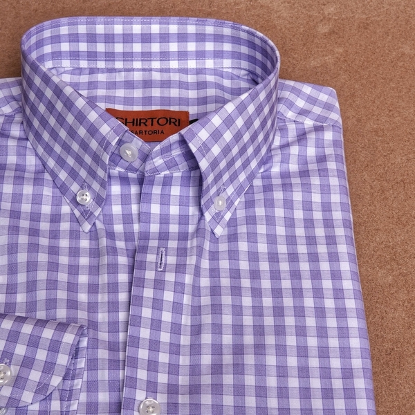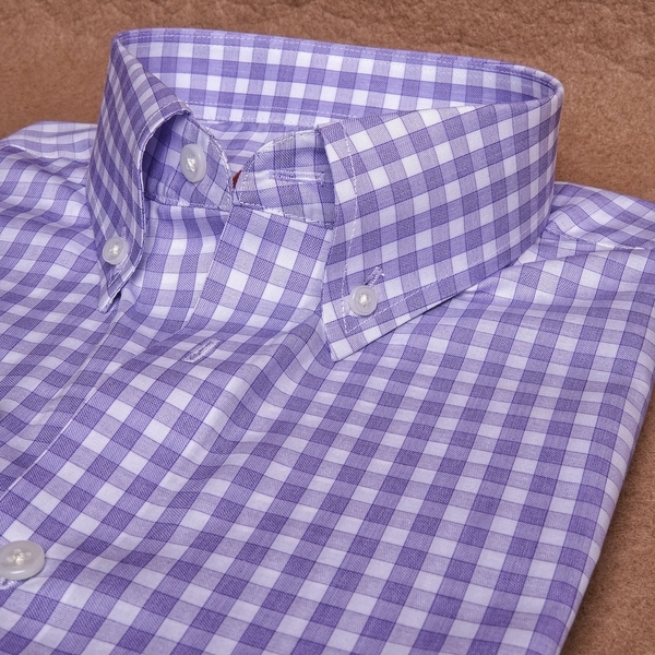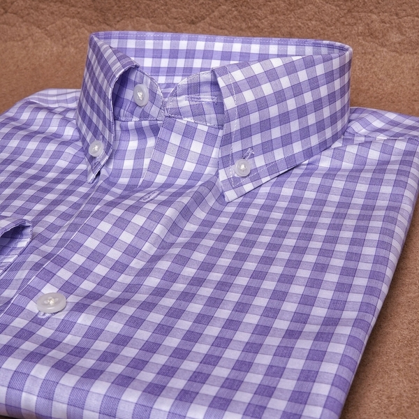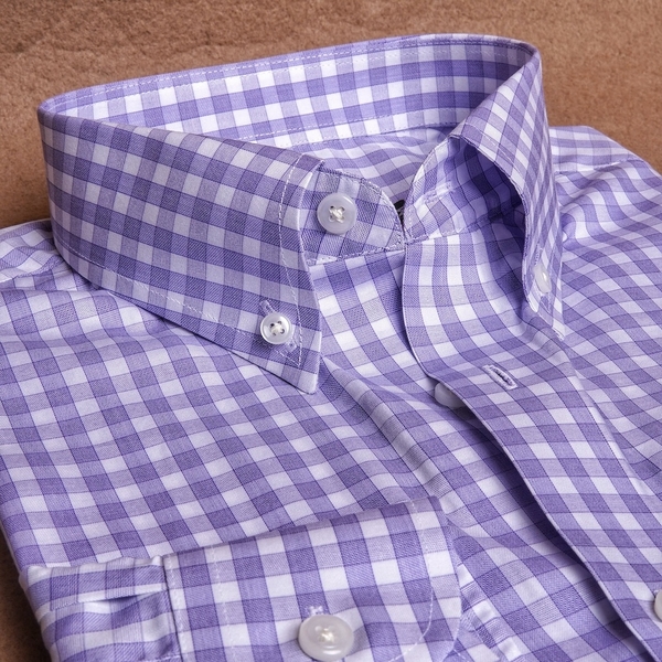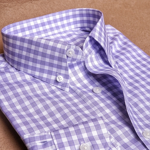 Purple Micro Check Button Down Cotton Shirt