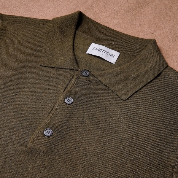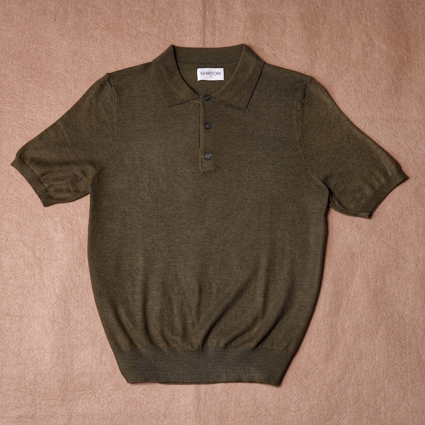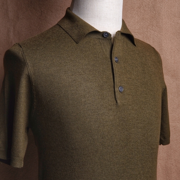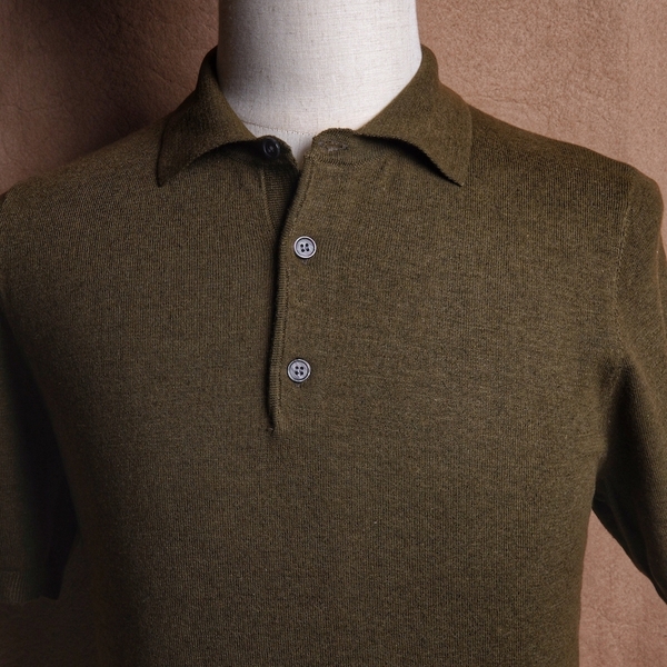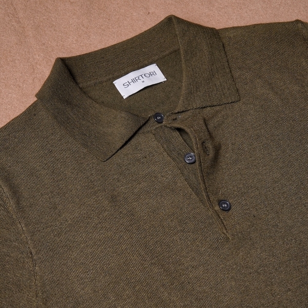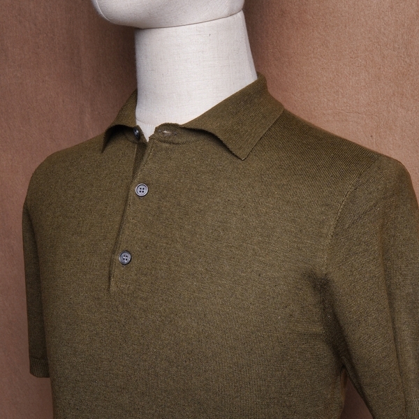Roma Sage Olive Wool Silk Cotton Knit Polo