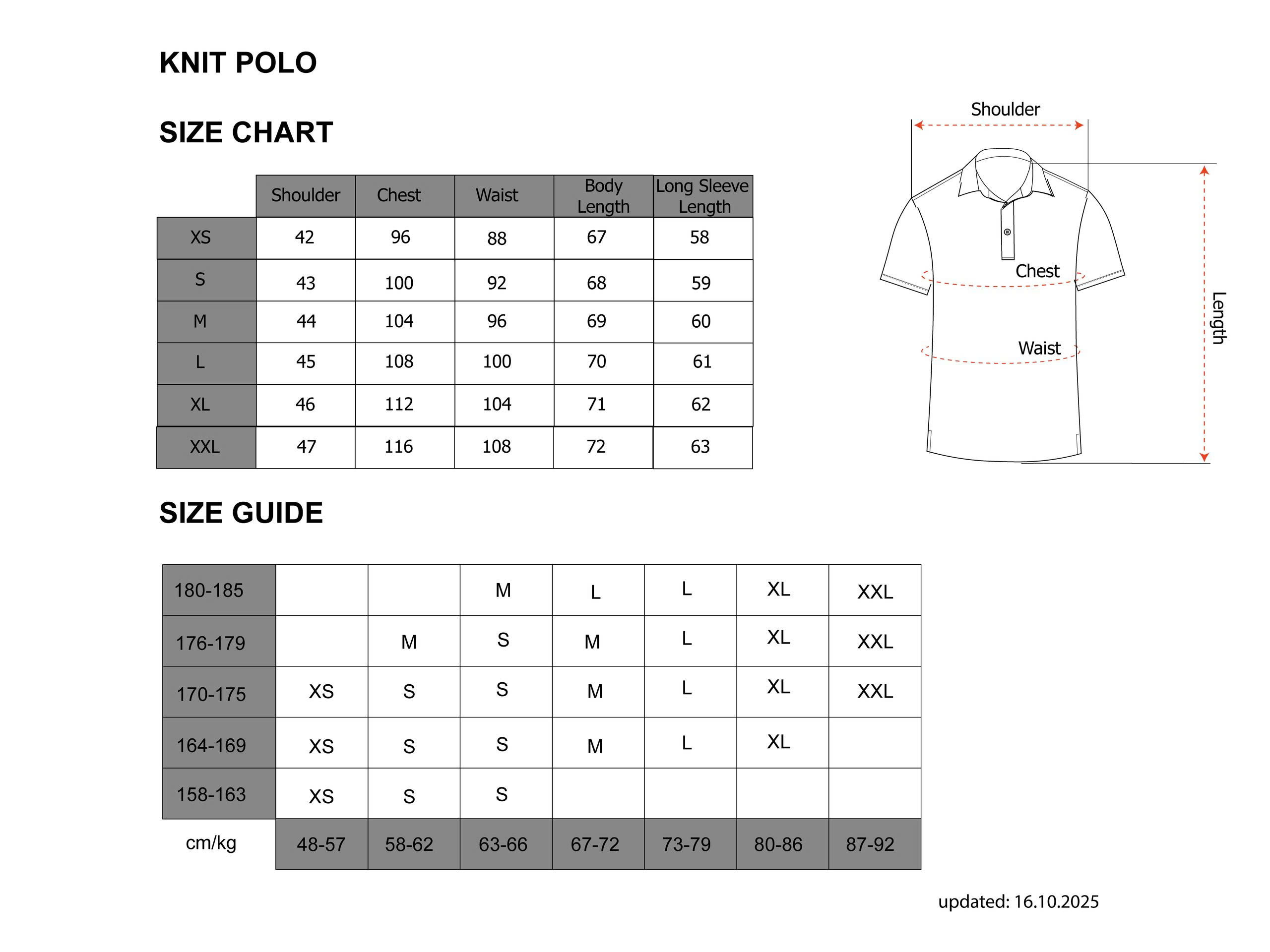 Size guide Knit Polo