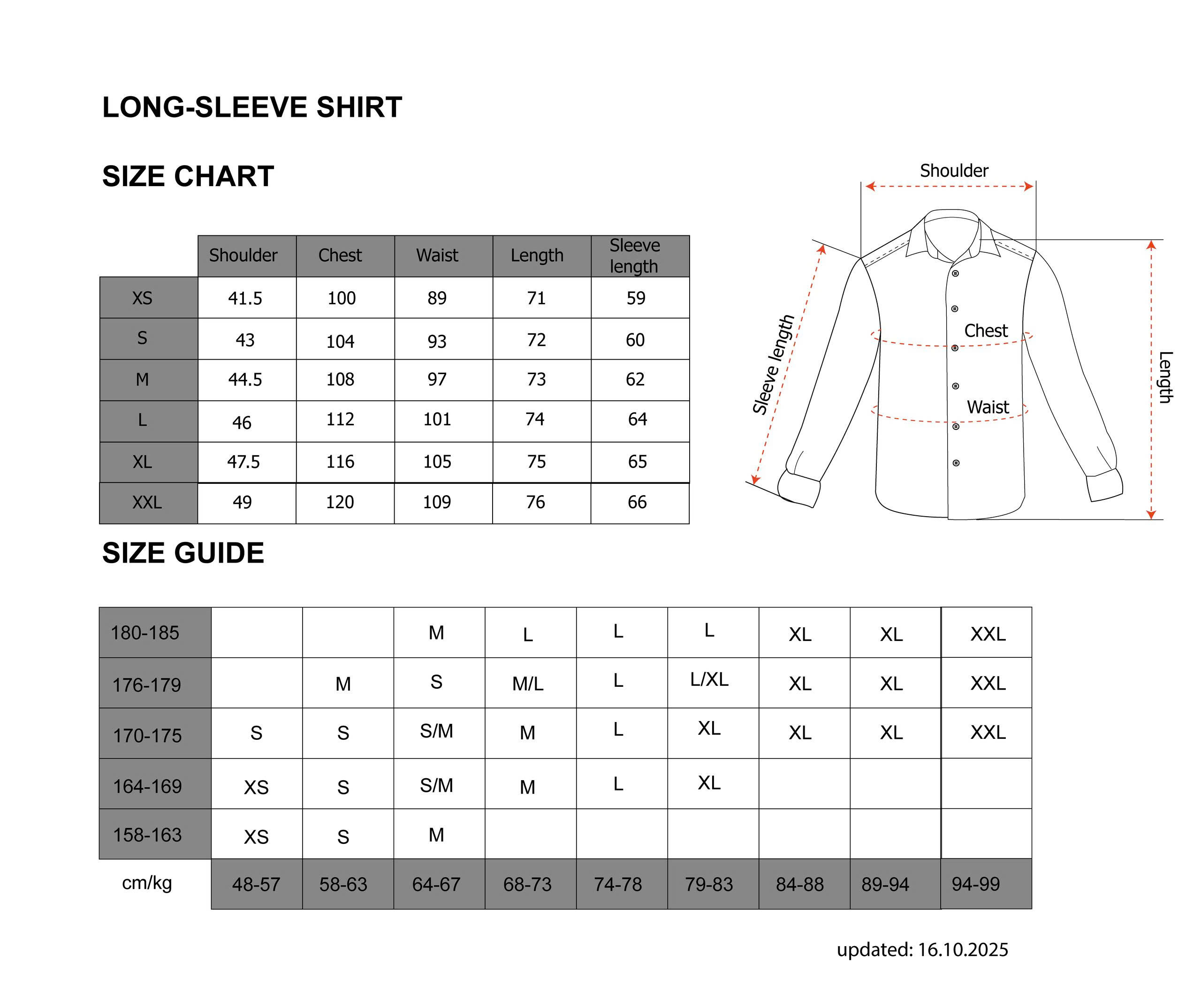 Size Guide Long Sleeve Shirt