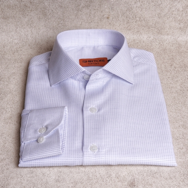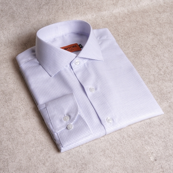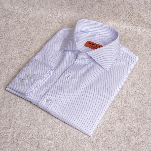 White Micro Windowpane Cotton Shirt